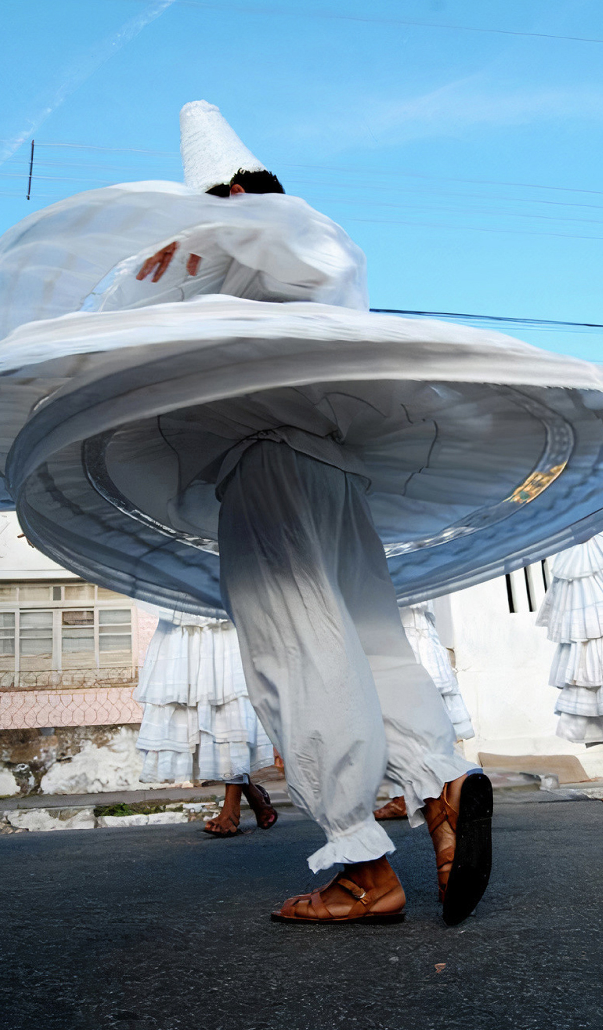 The Biennial's identity celebrates the cultural richness of Sergipe. Inspired by the local dance Parafusos, the visual identity captures the flow of movement — an ancestral act of liberation and resistance — to create a language that spins and swirls like the petticoats of the dancers’ costumes. The mirrored 3D shapes blend traces of the dance with the landscapes, textures, and colors of Aracaju — a gesture that connects past and future, the real and the imagined, spinning memories, traditions, and perspectives into a single movement.