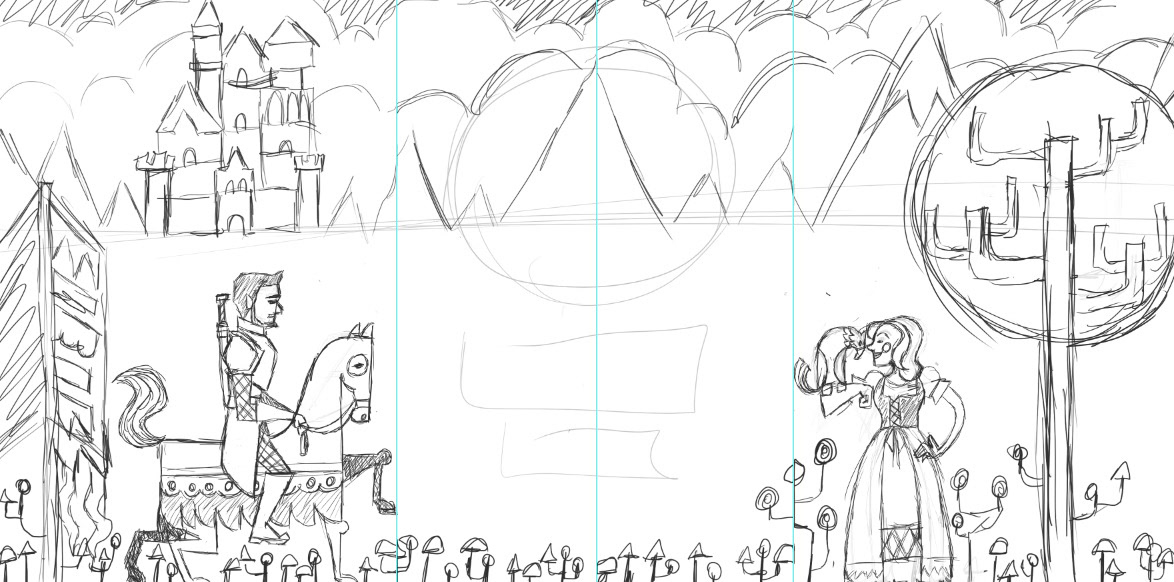 Para conferir um tom interativo e poético para este convite inicial, a ilustração mostra um pombo entregando a carta na janela de um palácio.
