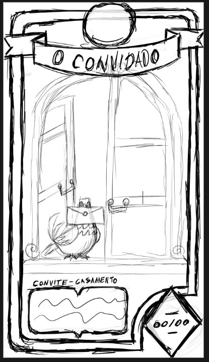 O save the date foi criadona forma de uma carta de TCG (Trading Card Games: jogo de cartas colecionáveis). A carta “O Convidado” designa a pessoa que recebe a desempenhar um papel na sua fábula: o papel de convidado.